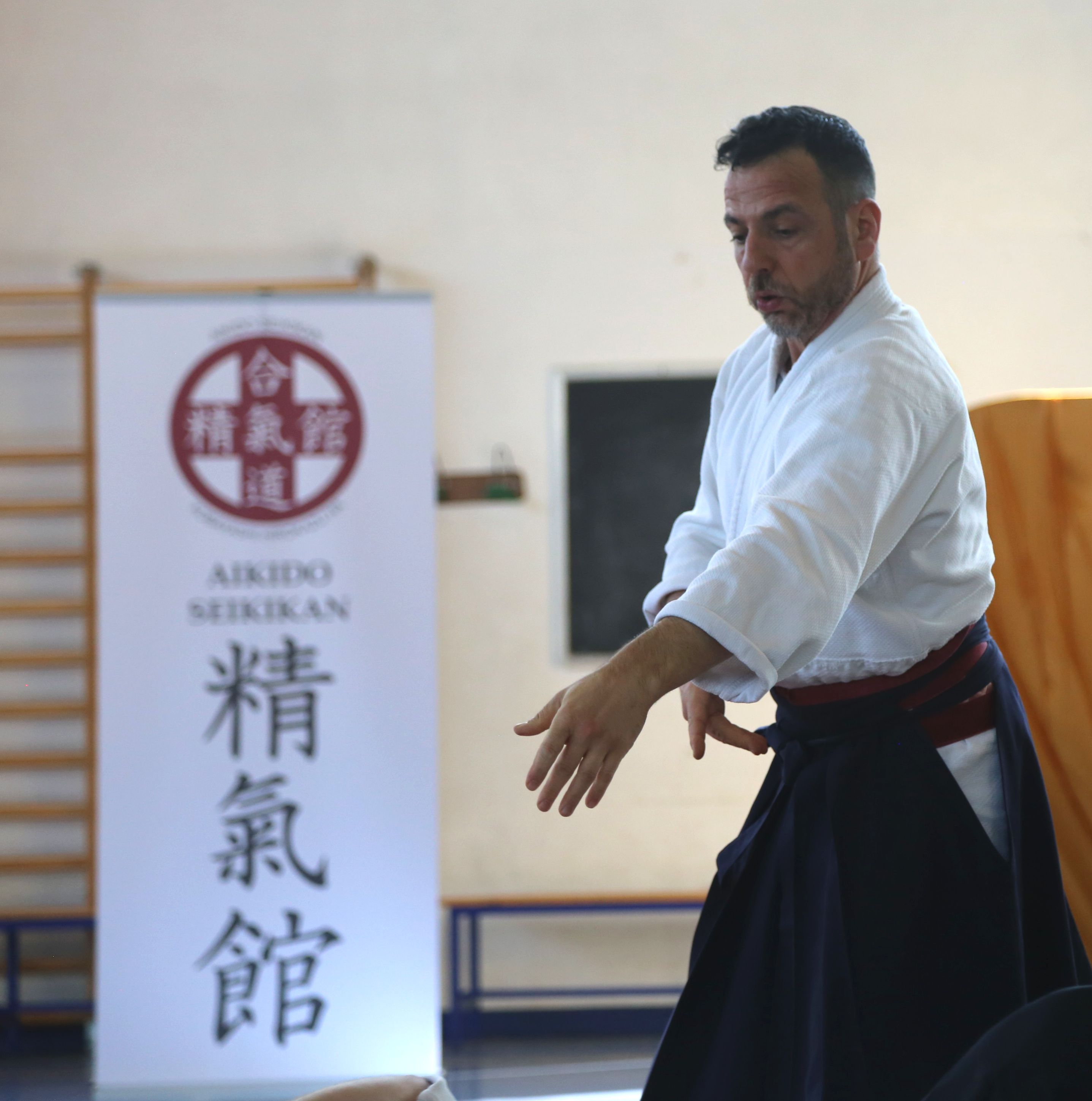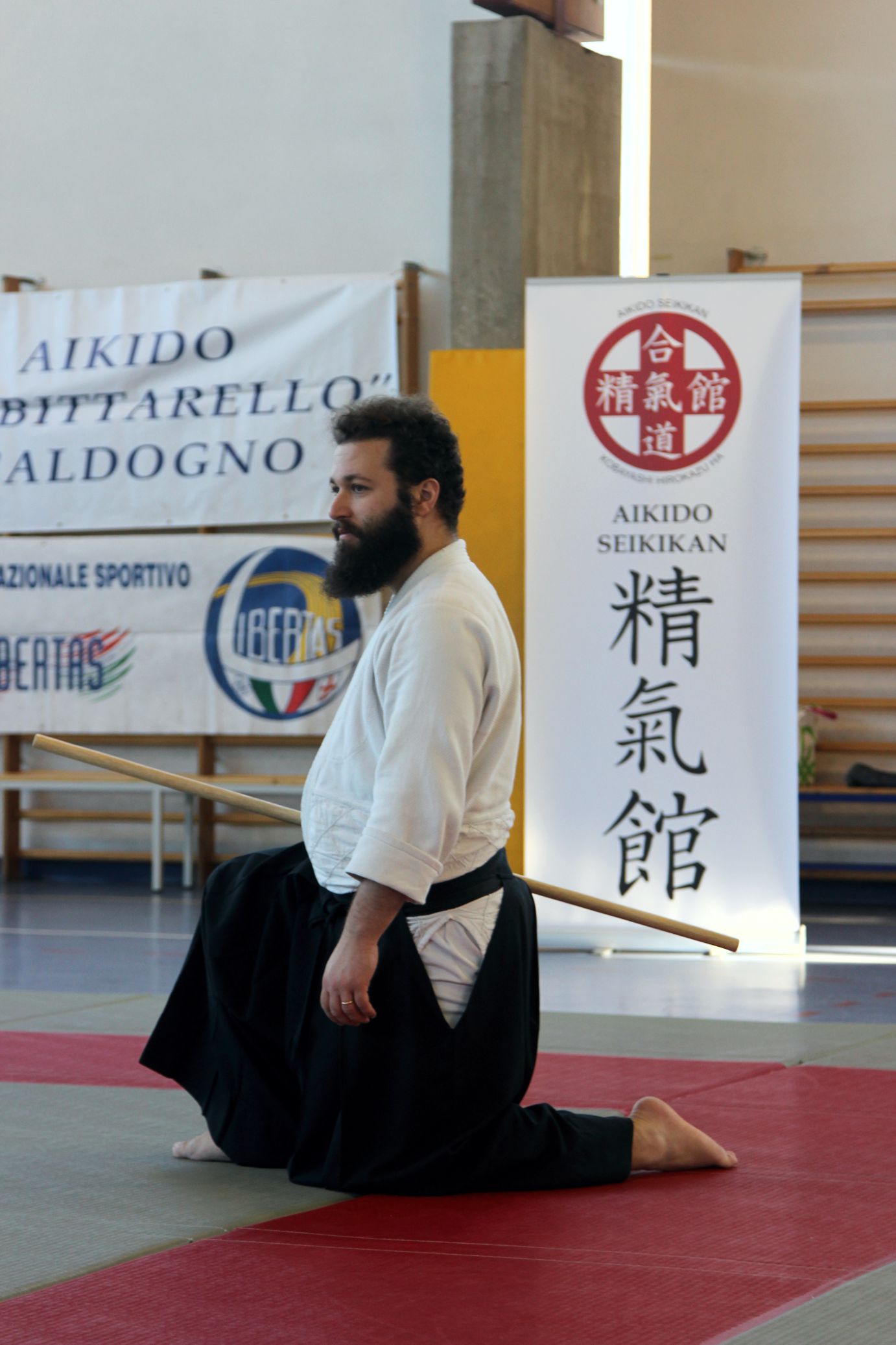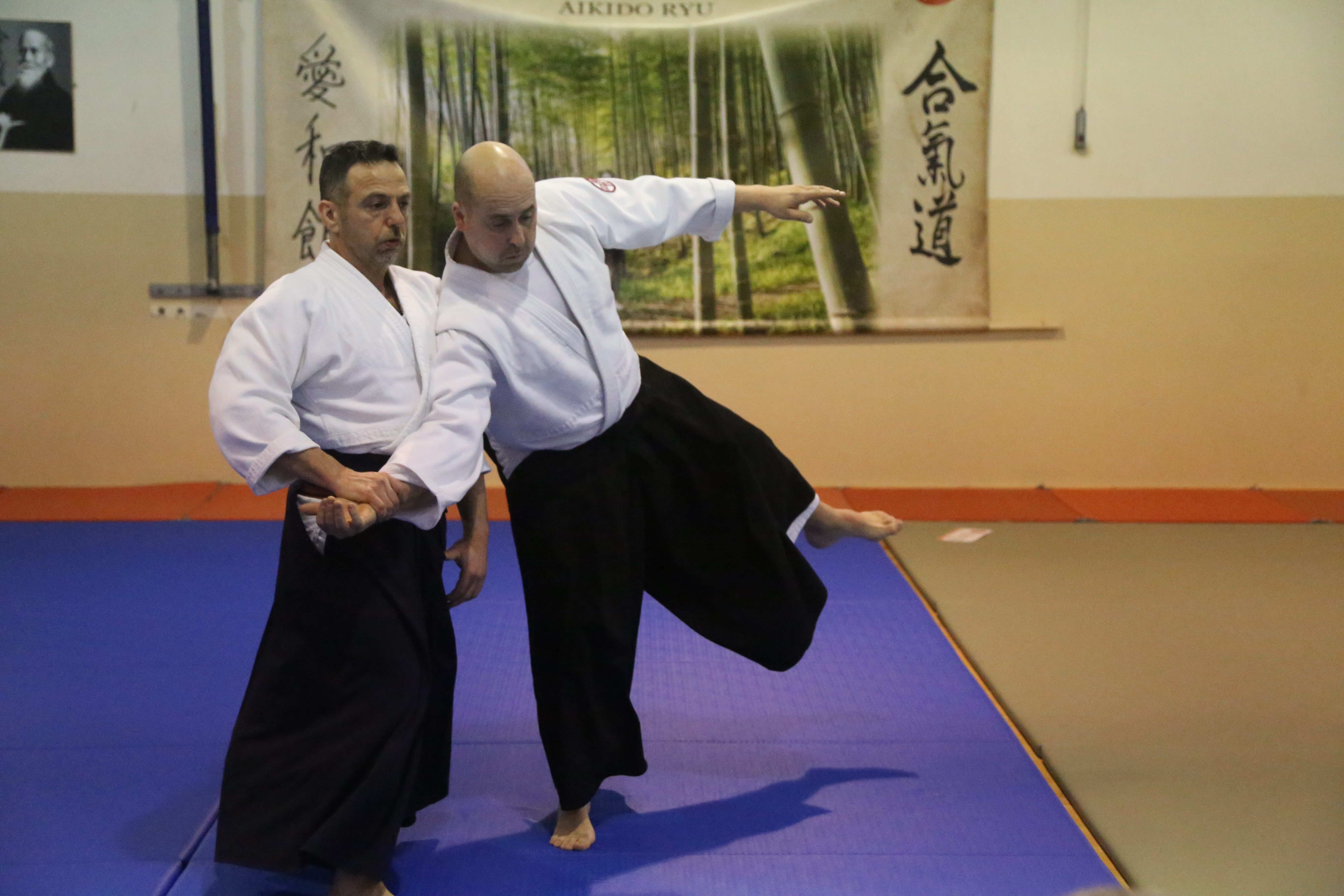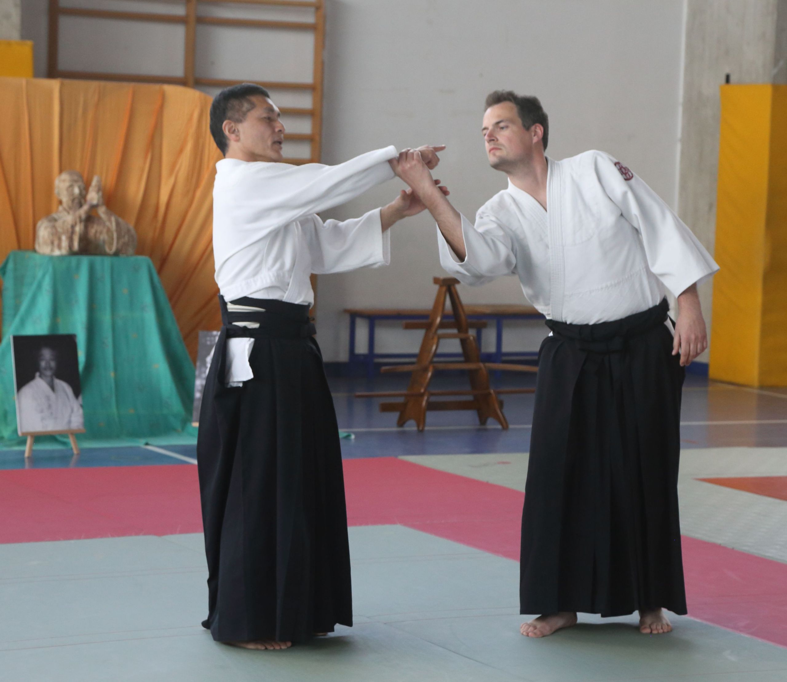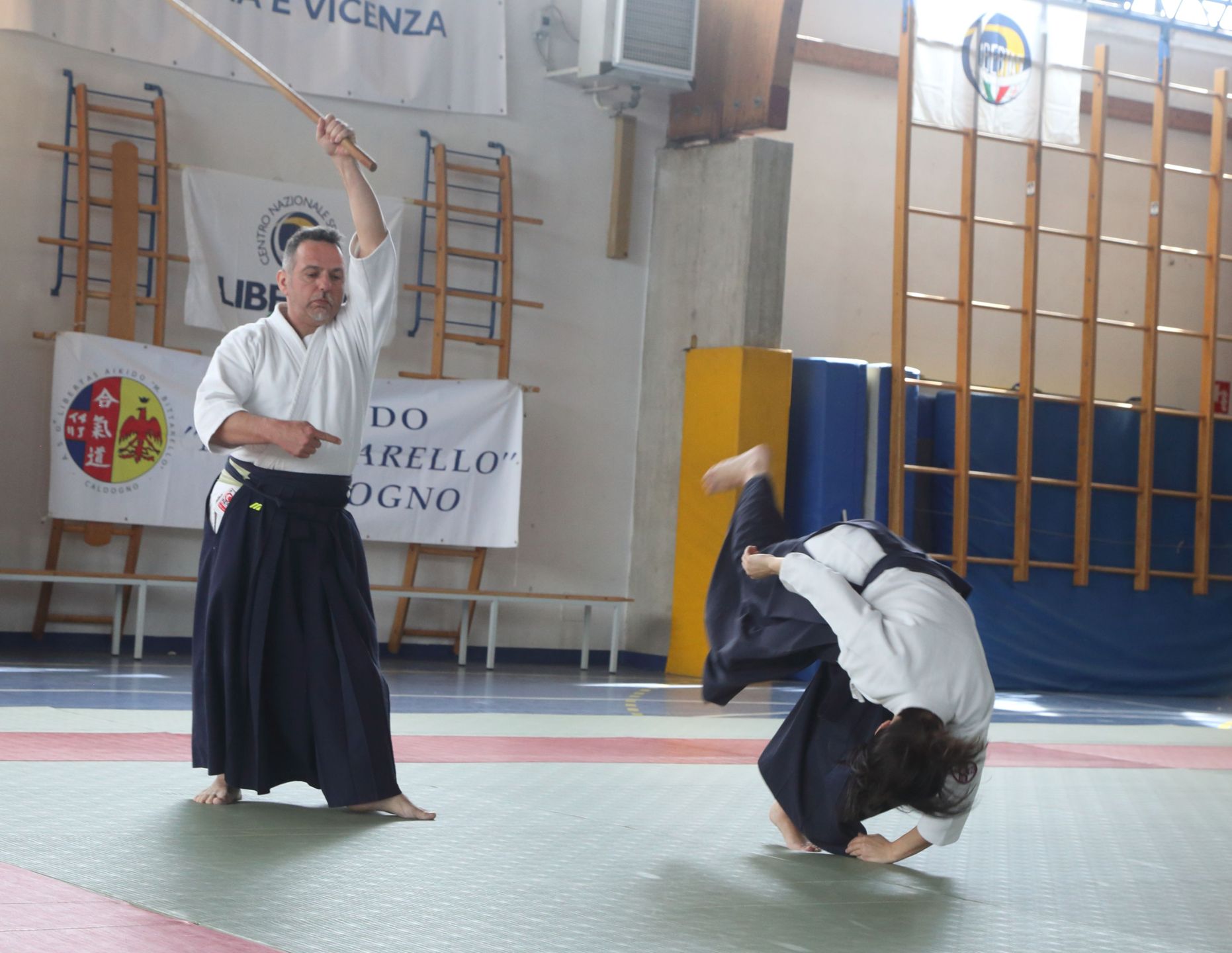 Tre Maestri che rappresentano lo stile del M° Hirokazu Kobayashi: M° Aldo Gonzato Shihan, M° Yuji Sato ospite dal Giappone e M° Paolo Tessaro a rappresentare la scuola di Aikido SeiKiKan di Caldogno.